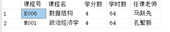 INSERT [dbo].[课程表] ([课程号], [课程名], [学分数], [学时数], [任课老师]) VALUES (N'K006 ', N'数据结构 ', 4, 64, N'马跃先 ') | |